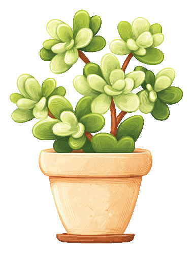 a drawing of a potted plant with green leaves