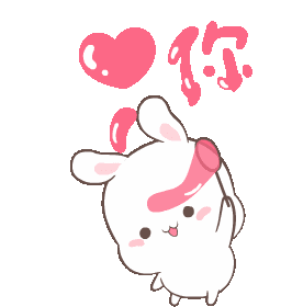 An adorable white bunny character waves, expressing 'I Love You' with a pink heart and the Chinese character '你'.