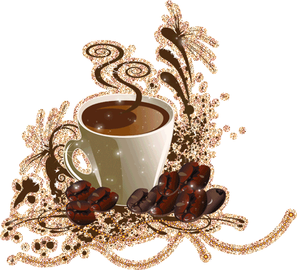 a cup of coffee is surrounded by coffee beans and a floral design