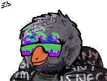 A cool pixel art bird, 'Burd Rad', wearing sunglasses and a shirt, animated with a confident vibe.