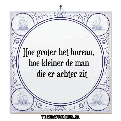 a sign that says hoe groter het bureau hoe kleiner de man die er achter zit on it