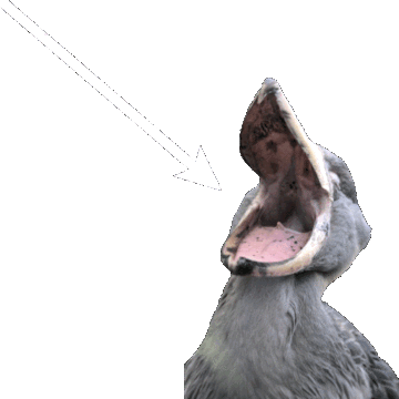 A shoebill bird with its large mouth wide open, ready to eat. A unique and striking bird.