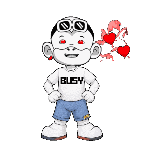 a cartoon character wearing a white shirt that says busy