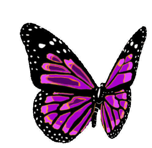 A beautiful purple and black butterfly with white-dotted wings gently flaps, symbolizing freedom and grace.