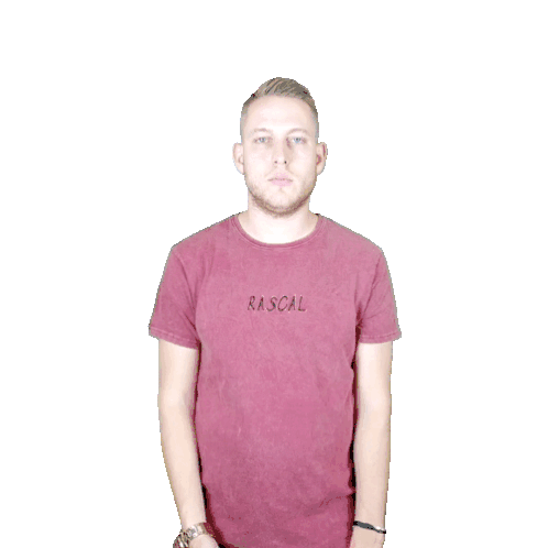 A man in a red "RASCAL" t-shirt throws colorful confetti, celebrating the vibrant Cologne Carnival.