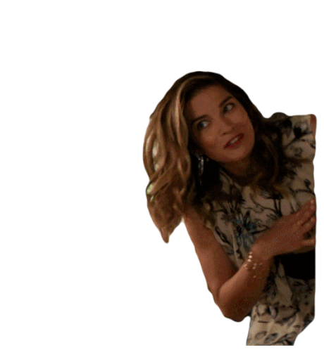 Alexis Rose, played by Annie Murphy from Schitt's Creek, waves goodbye with a cheerful smile.