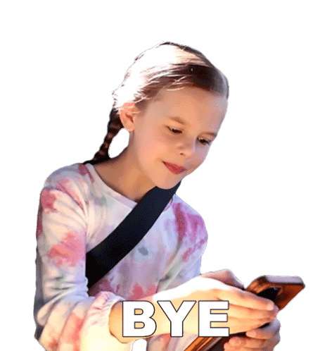 Claire Crosby excitedly says 'Bye' while holding her phone, perfect for farewells.