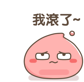 A grumpy pink blob character with a frown and rosy cheeks says 'I'm leaving' in Chinese, indicating departure or annoyance.