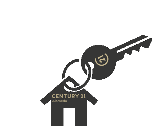 a century 21 logo with a key on a house shaped keychain
