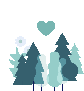 A stylized forest scene with a heart and circular arrows, representing environmental care, sustainability, and the 'Circular For Zero' initiative.