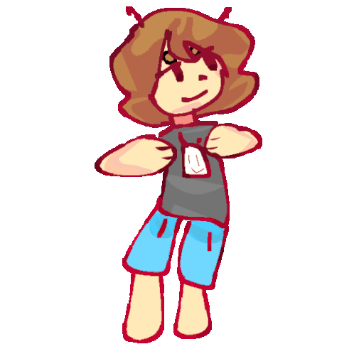 a drawing of a girl wearing a t-shirt with the letter j on it and blue shorts
