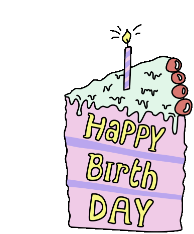 A vibrant animated sticker featuring a slice of birthday cake with a lit candle and 'Happy Birth Day' text.