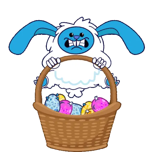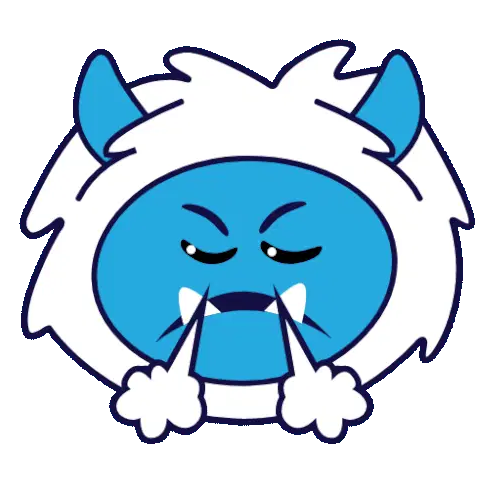 Cake Monster Monsta, the furry blue creature, intently reads a message on its glowing smartphone with a focused expression.