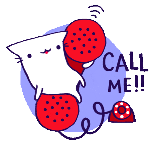 a cartoon of a cat talking on a red phone with the words call me written below it