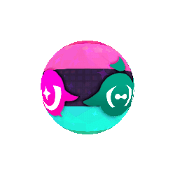 a pink , purple , and teal ball with a green fish on it .