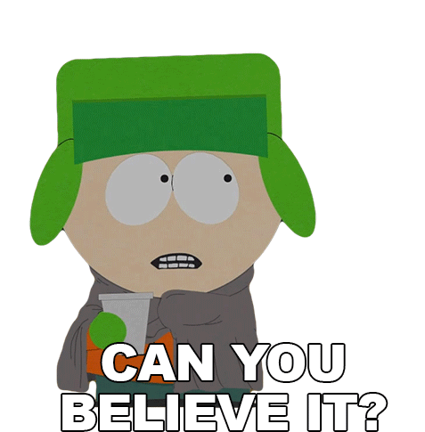 Kyle Broflovski from South Park asks 'Can You Believe It?' with a skeptical expression, holding a cup.