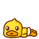 A cute canard (duck) character lying down, appearing tired, dizzy, or 'dead', changing from yellow to grey.