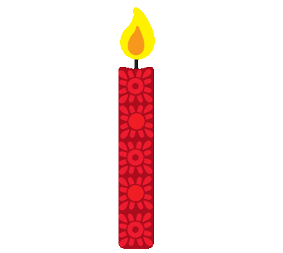 A vibrant red candle with a bright yellow flame, glowing warmly and creating a cozy atmosphere.