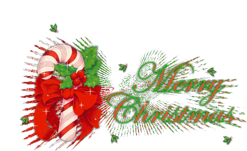 A festive animated sticker featuring a sparkling candy cane with a red bow and holly, alongside 'Merry Christmas' text.