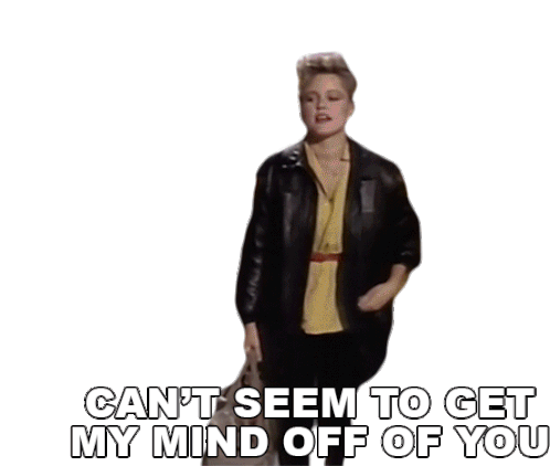 A woman from The Go-Gos sings the lyrics 'Can't Seem To Get My Mind Off Of You' with emotion.