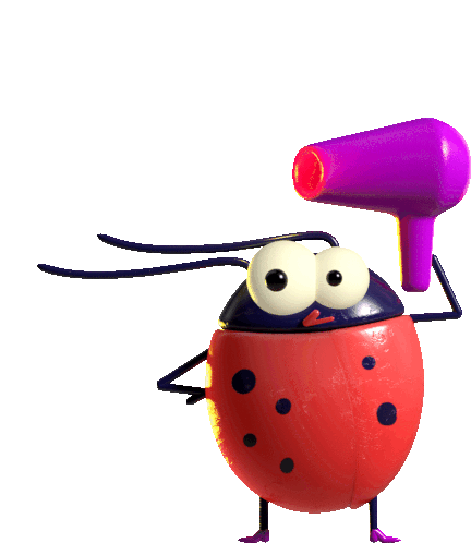 a ladybug is holding a purple hair dryer in its hand