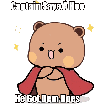 A cute cartoon bear in a red cape with the meme text 'Captain Save A Hoe. He Got Dem Hoes.'