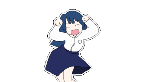 a drawing of a girl with blue hair and a white shirt