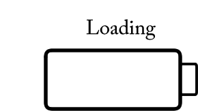 An animated sticker depicting a battery charging with red, yellow, and green segments, accompanied by 'Loading' text.