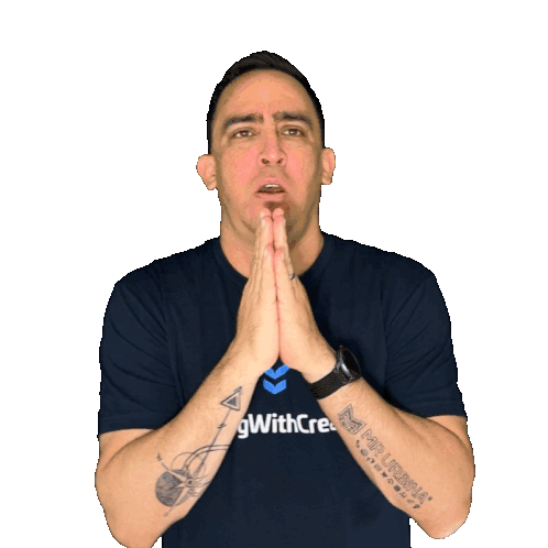 Carlos Urbina, also known as Mr Urbina, is seen praying with his hands clasped together, showing various expressions.