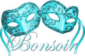 Animated sticker featuring a festive carnival mask saying 'Bonsoir' with an elegant, evening vibe.