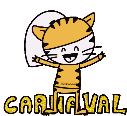 A cheerful animated character in various costumes like a tiger, unicorn, bunny, and vampire, celebrating carnival fun.