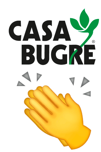 a logo for casa bugre with a pair of hands clapping
