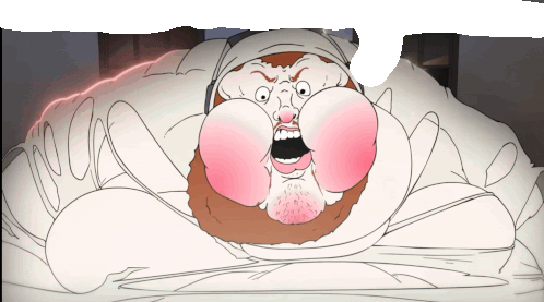 a cartoon drawing of a bearded man with a speech bubble behind him