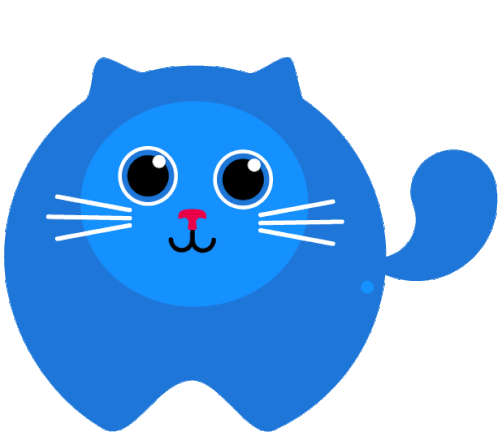 A charming blue cartoon cat with big eyes and whiskers blinks adorably, perfect for adding a cute touch to messages.