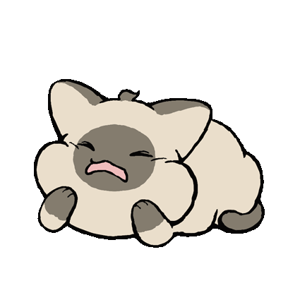An adorable cartoon cat lies down, crying with tears, squinted eyes, and a downturned mouth, looking very sad.
