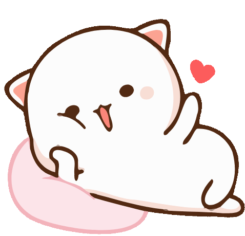 A chubby white cartoon cat, identified as Cat Farsi, lies on a pink pillow, happily blowing a kiss with a heart.