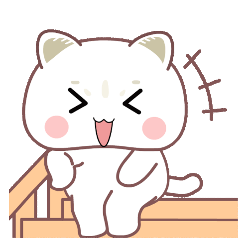 A cute white cartoon cat laughs heartily, with rosy cheeks and a joyful expression, perfect for conveying happiness.