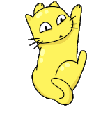 A cute yellow cartoon cat animatedly slides up and down, stretching its paw towards the sky with a playful expression.