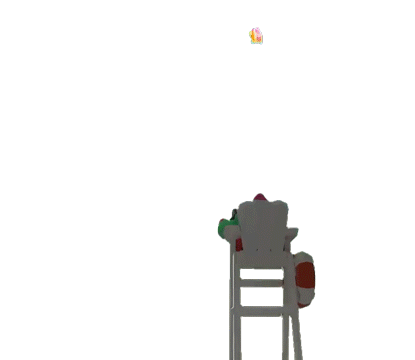 Brawl Stars character in a lifeguard chair attempts to catch a falling whistle.