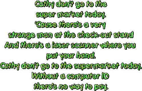 Cathy receives a stark warning not to go to the supermarket today due to a strange man, a laser scanner, and the need for a computer ID to pay.