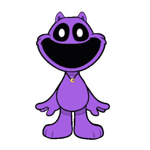 a purple cartoon character with a necklace that says c on it