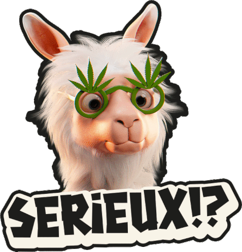 a sticker of a llama wearing glasses with marijuana leaves on it