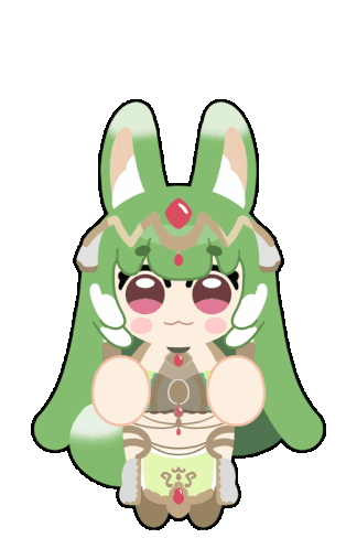 a cartoon drawing of a girl with green hair and a red heart on her head