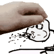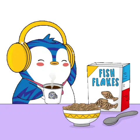 A hand holds a donut over a cartoon cereal bowl's head, creating a funny and playful moment.