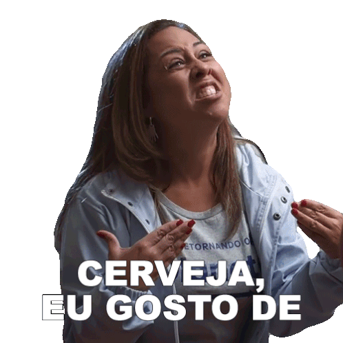 a woman is making a funny face and the words cerveja eu gosto de are above her