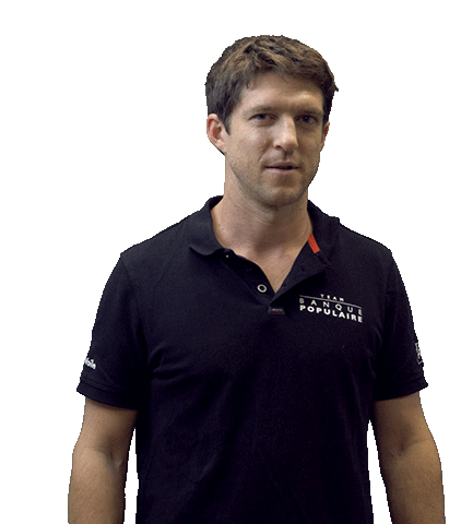 Mael Devoldere winks with a playful expression, ready to go with 'C'est Parti Allez' and team spirit.