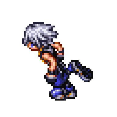 Riku from Kingdom Hearts: Chain of Memories in a dynamic running or kicking pixel art pose, perfect for expressing energy.
