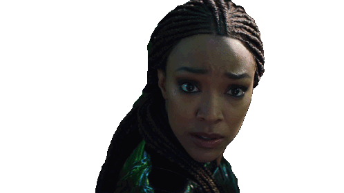 Captain Burnham from Star Trek Discovery looks surprised, then determined, conveying 'changed my mind' or 'nevermind.'