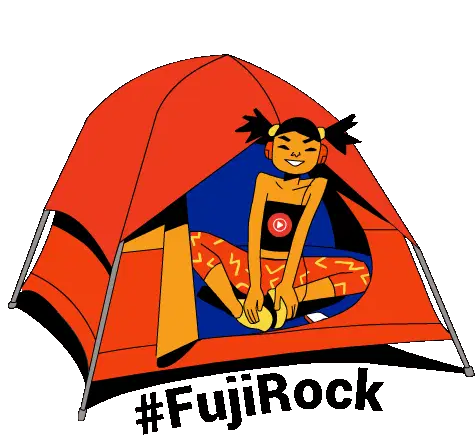 Animated sticker featuring a Chaostrip camping van with a side tent, parked in the rain, perfect for outdoor enthusiasts.
