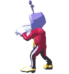 Deltarune character Tenna in pixel art style, depicted with a large body and single eye, performing a kick.